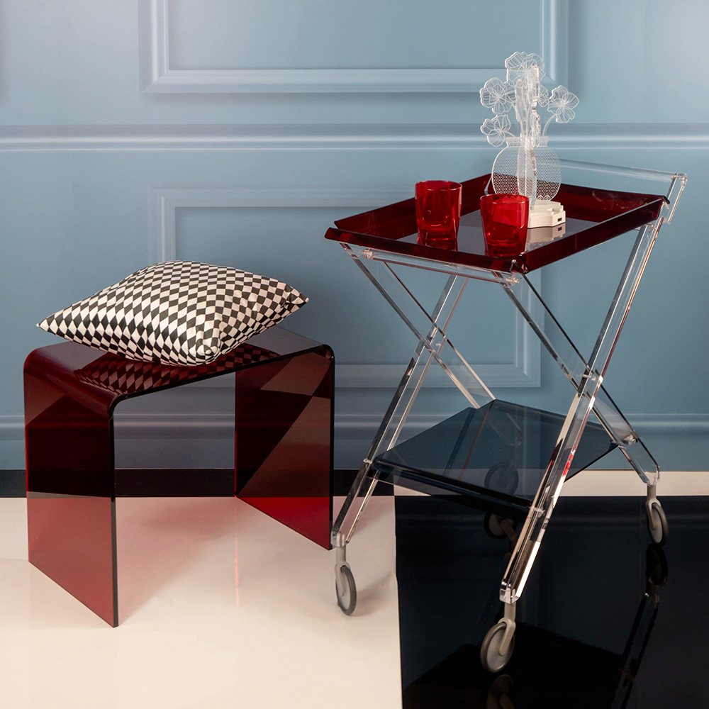 Il Natale è anche convivialità, tavole apparecchiate e momenti insieme. Per rendere ogni situazione ancora più pratica ed elegante, il Carrello Aurelio colorato è l’alleato ideale: un carrello pieghevole in cristallo acrilico, salvaspazio e versatile, dotato di maniglia in alluminio e due vassoi removibili. Perfetto come mobile bar, come supporto durante le feste o semplicemente come elemento di design moderno nella zona giorno.