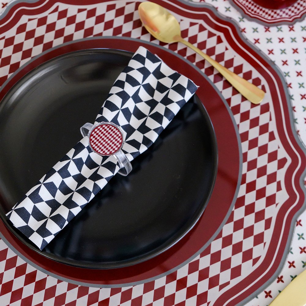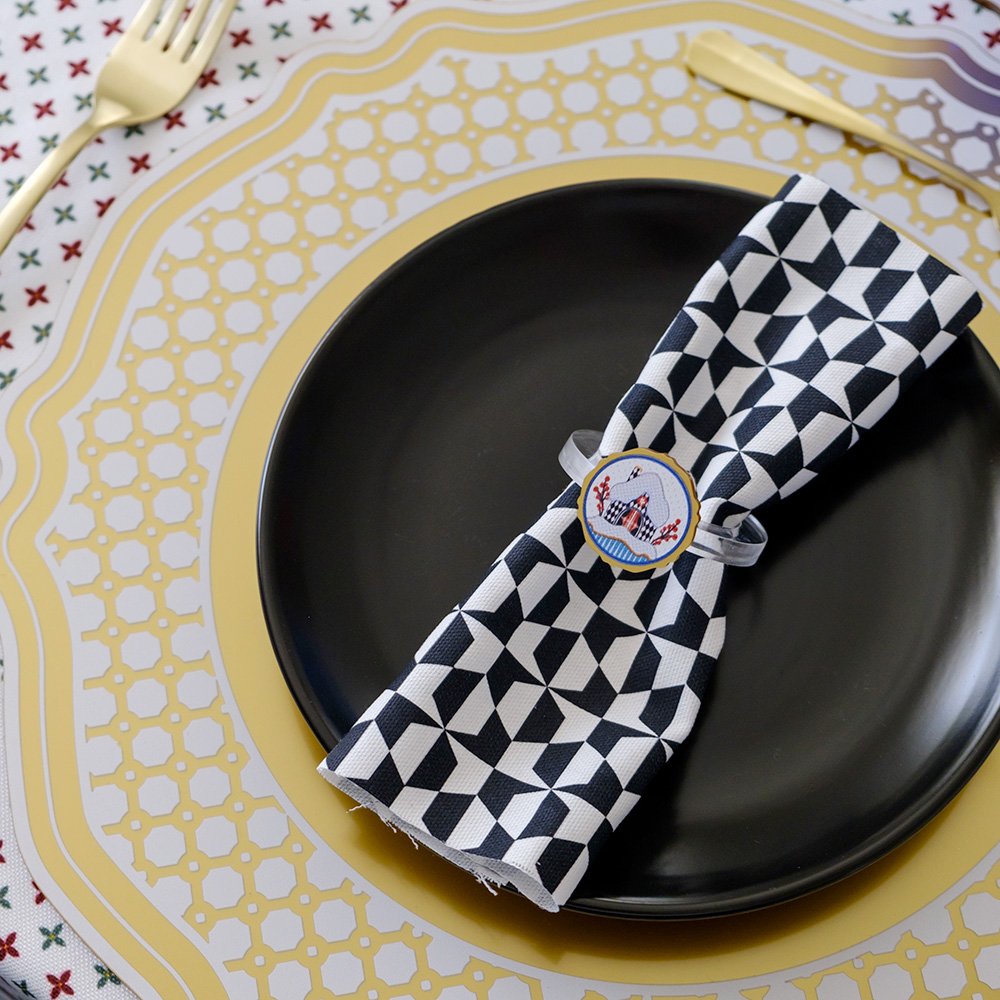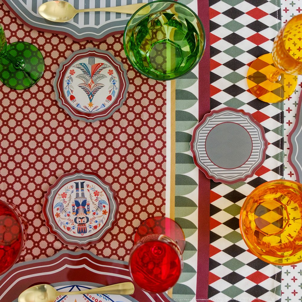 E quando si parla di dettagli, sono proprio quelli a trasformare una tavola da semplice ad indimenticabile: i Sottobicchieri natalizi Fiaba, ognuno con una grafica diversa, portano gioco e raffinatezza, donando vibrazioni festive senza appesantire la composizione. Lo stesso spirito creativo anima gli Allacciatovaglioli Fiaba, coordinabili tra loro o abbinabili ai sottopiatti e agli altri complementi: piccoli tocchi che rendono la tua tavola ancora più curata e personale.
